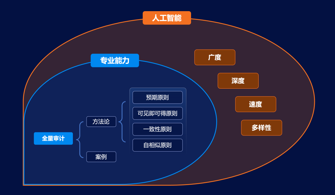 全量审计是区别于抽样审计的一种方法,因数据量大、成本高而生的抽样审计碰到了难以逾越的困境,而数据运算、储备成本的降低使得对全量数据进行审计成为可行。我们执行了大量的全量审计项目,总结出预期、可见即可得、自相似、一致性等全量审计的原则,并因此而演绎出不同的、具体的方法,并与专家对小数据的分析相结合,打通流程,积累了大量的案例。以我们的实践而论,全量审计的方法论、案例、流程已经具备基础,后可训练人工智能,把全量审计推向更广、更深、更快,也让企业多样化场景可以被有效监控起来,人工智能技术会让全量审计的高门槛变低,让全量审计的成本变低,具备商业上大范围应用的基础。只有全量审计才能让对全级次单位、全部业务的监督具备基础。
