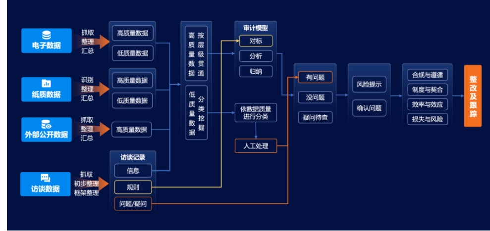 二是从抽样到全量的转变,只有实现了对全级次公司全过程数据的全量审计,且全量审计的模型是有效的,才能从根本上解决问题,达成监管、治理层、管理层的预期。